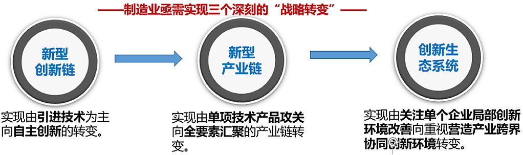 当下亟需打造涵盖技术、人才、平台、政策以及国际合作等要素互动融合的制造业创新生态系统,营造创新文化氛围,发挥已有各类创新载体的作用,打破单元、组织、区域和行业的界限,形成高水平有特色的制造业协同创新网络和平台,塑造我国制造业国际竞争新优势。